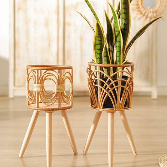Stojak na rośliny z rattanu VelesRealm™ – ekspozycja z plecionego drewna