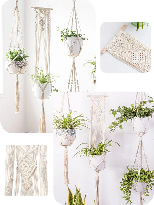 Doniczka wisząca VelesRealm™ Macrame – Boho Cotton Rope Decor