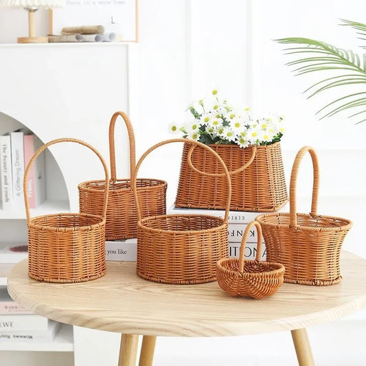Kosz na kwiaty w stylu rattanu VelesRealm™ – tkany ręcznie, wielofunkcyjny