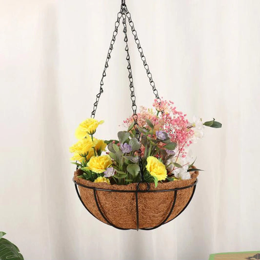 VelesRealm™ Wiszący kosz z włókna kokosowego – metalowa doniczka druciana